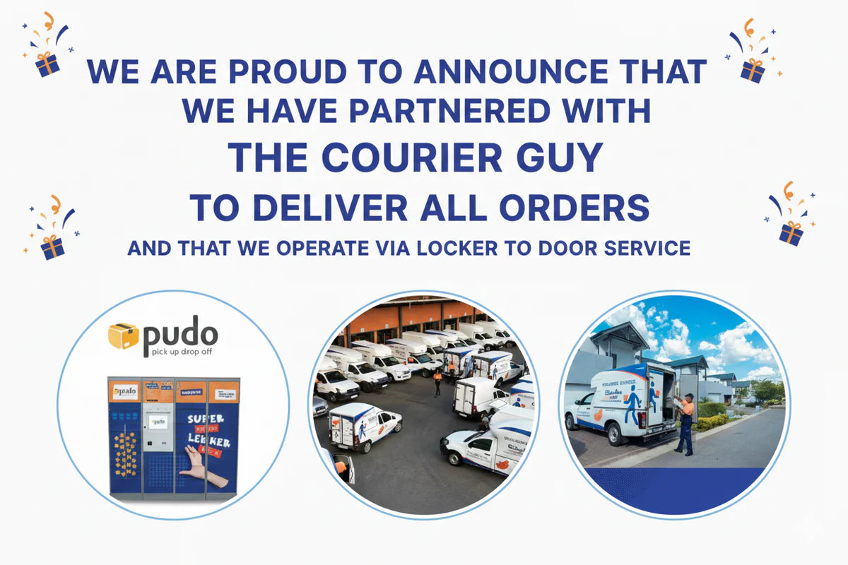 We use secure PayFast payments, protecting your financial information, and deliver exclusively with The Courier Guy for fast, tracked, and safe delivery.
