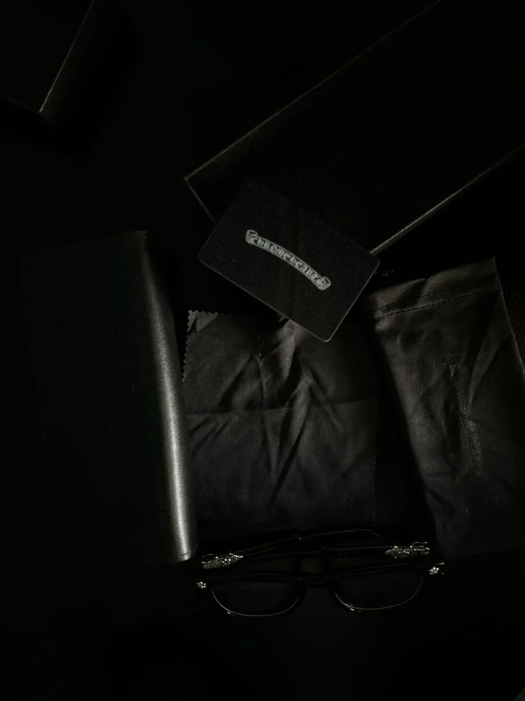 CHROME HEART GLASSES - BLACK & SILVER BADGES
